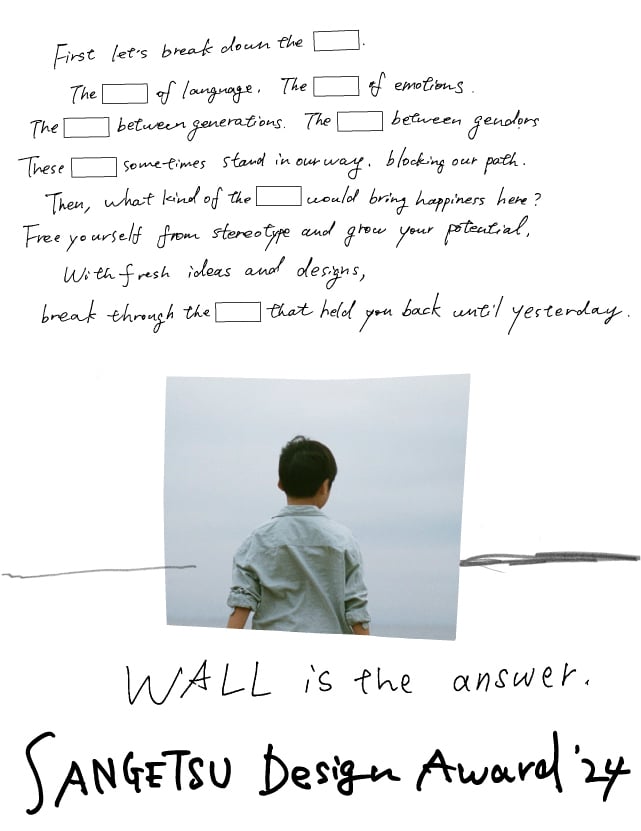 * You will be sent a notification by email once you have completed the entry process. If you use filters to block domain names or spam, make sure ahead of time that your computer and cellphone are set to allow emails from sangetsu-award.jp.
